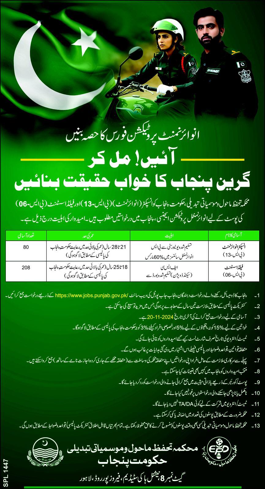 Latest Advertisement Environment Protection Department Punjab Jobs 2024