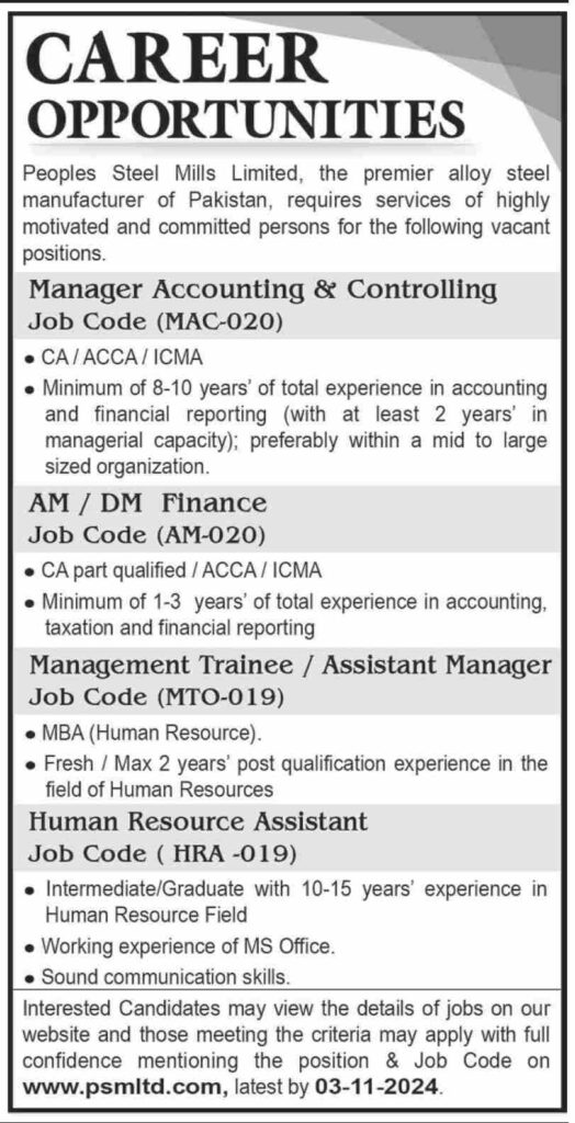 Pakistan Steel Mills Limited Jobs 2024 Latest Advertisement