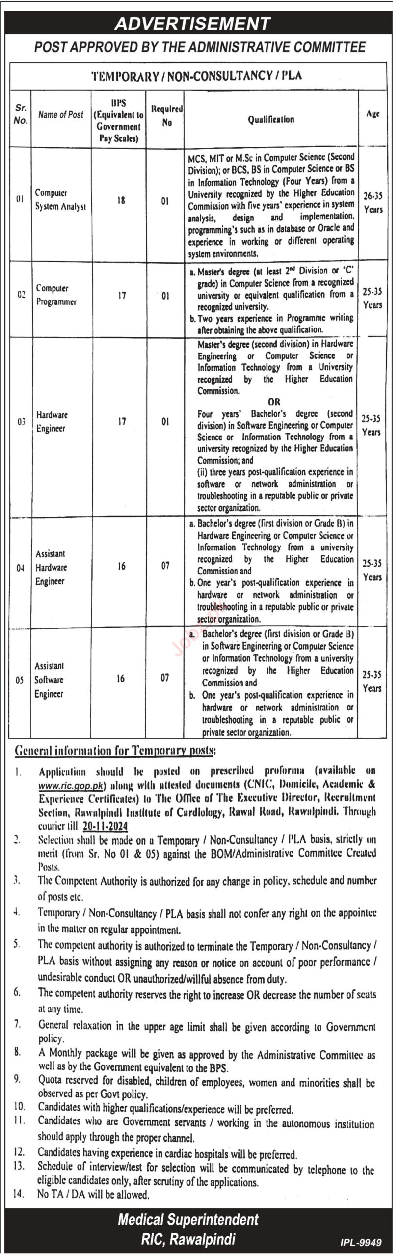 Title: Rawalpindi Institute Of Cardiology Jobs 2024 Application Form